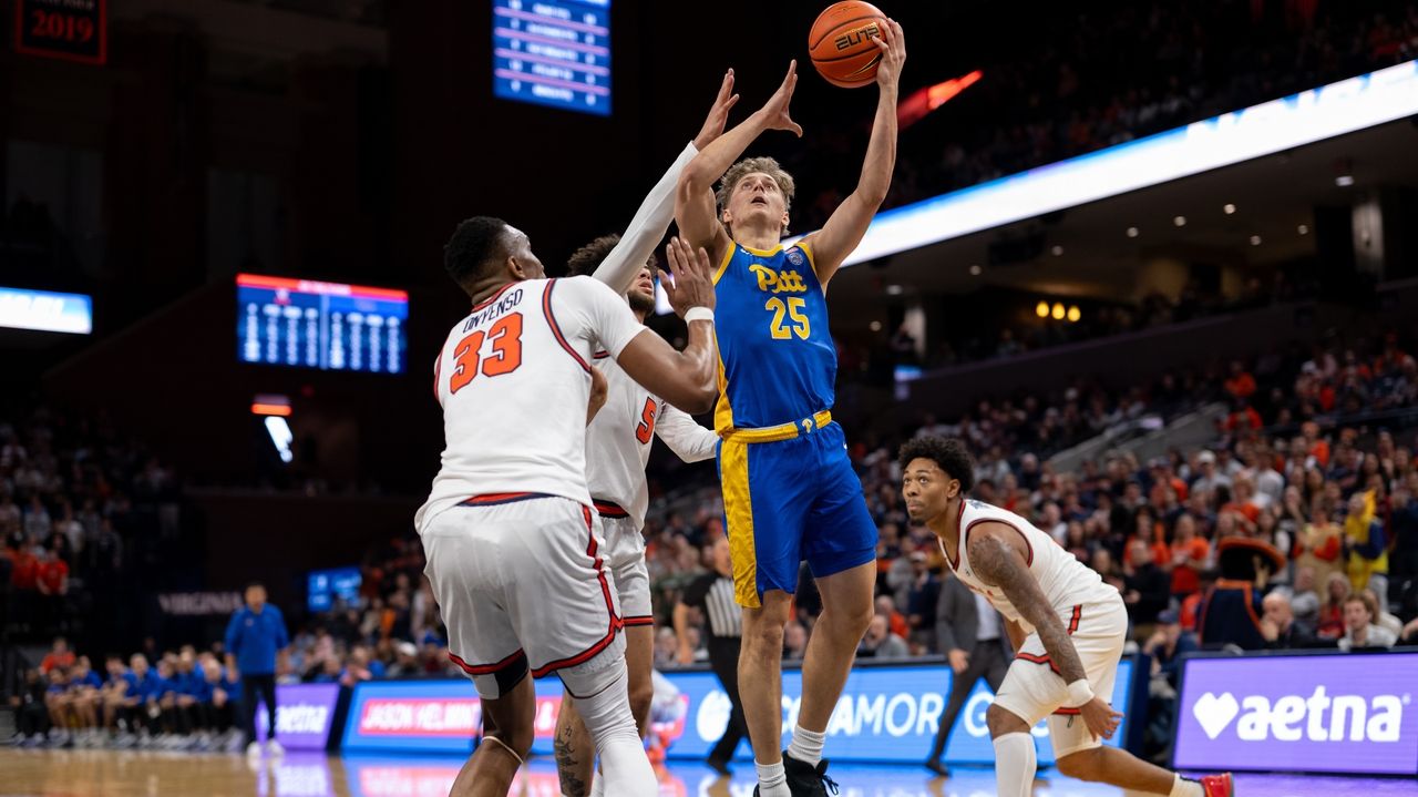 Pitt guard Nojus Indrusaitis (25) drives to the basket against Virginia center Ugonna Onyenso. CHARLOTTESVILLE, Va. (AP) — Sam Lewis scored 15 points, Thijs De Ridder had 10 points and 12 rebounds and No. 18 Virginia beat Pittsburgh 67-47 on Tuesday night …